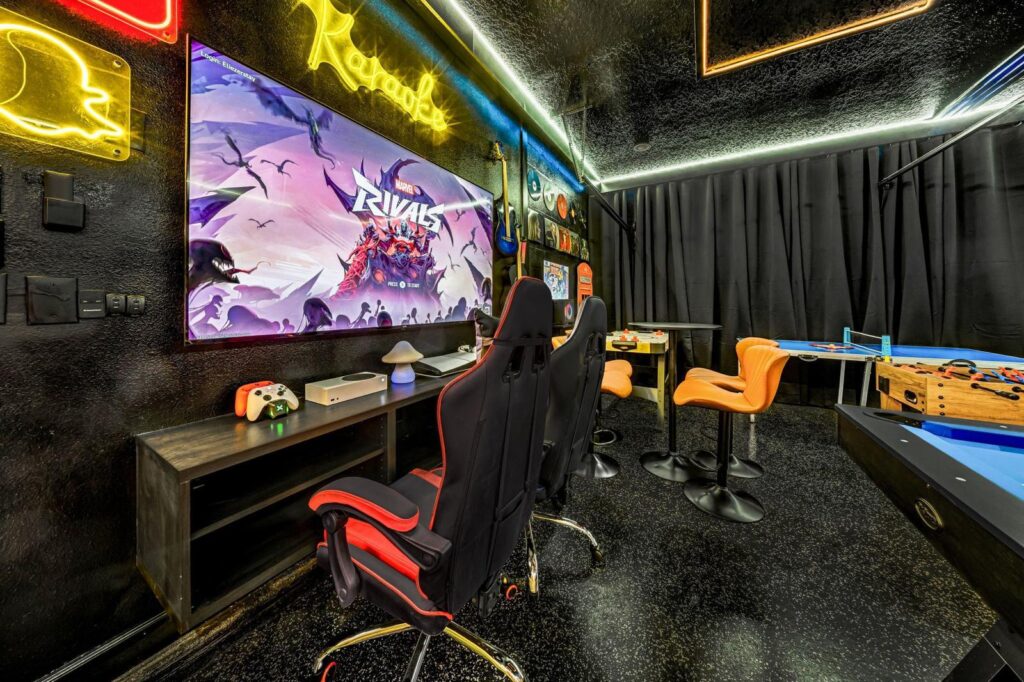 With luxurious amenities, extensive entertainment options, resort access, and close proximity to Orlando’s world-famous attractions, Eliezer Staycation offers everything travelers need for an unforgettable vacation. Guests consistently rave about the spacious layout, beautifully designed living spaces, indoor fireplace, private theater, full arcade-style game room, private pool, and the convenience of staying so close to Disney and other major destinations.